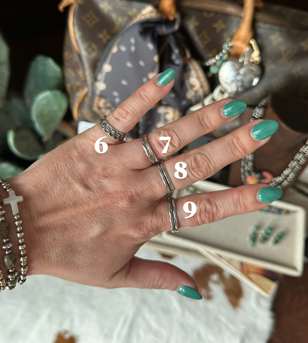 stamped detail silver ring